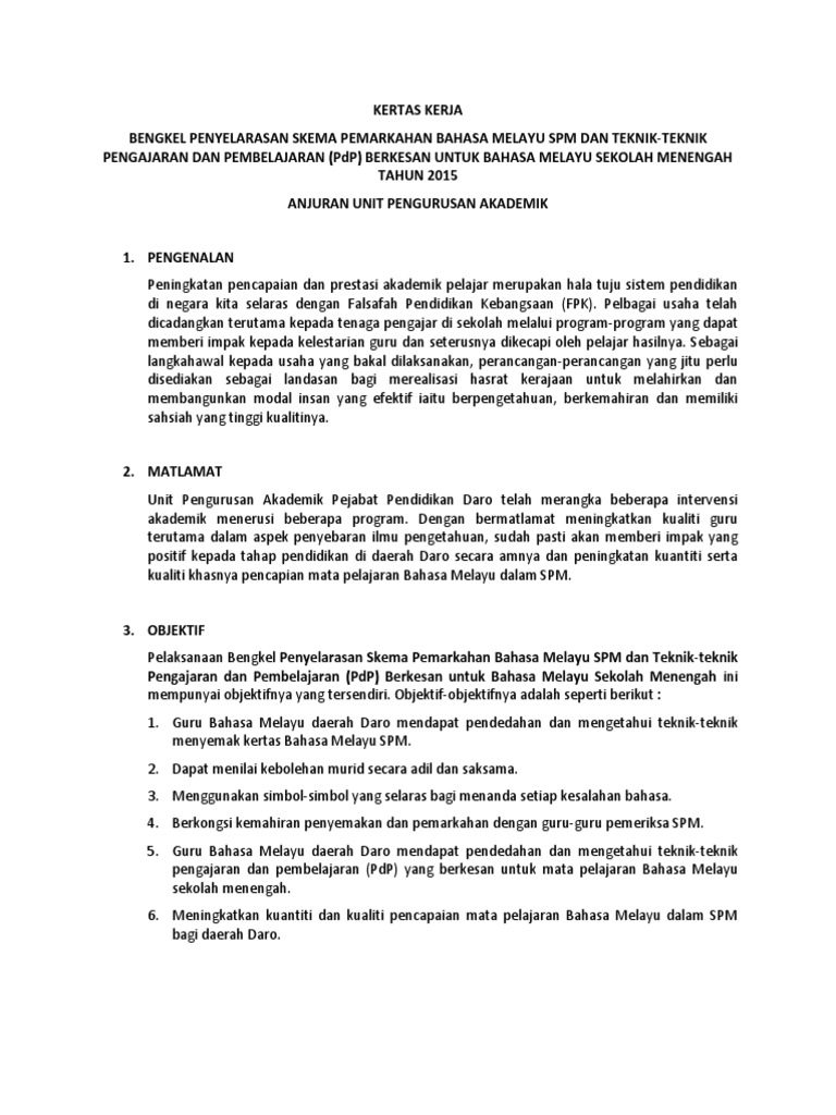 Kertas kerja kem bahasa melayu. Apr 01 2022 program bengkel penyediaan kertas kerja sodc penetapan bsc mysed.
